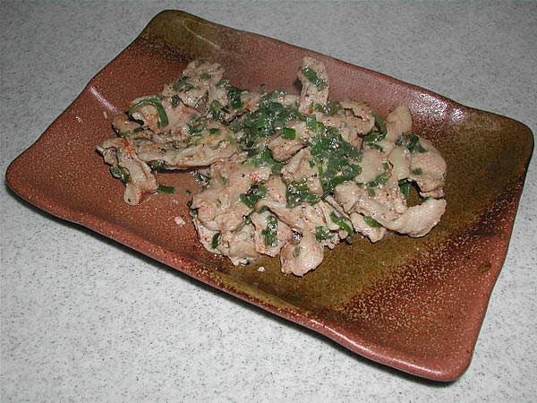 「いろは」シリーズをちょっと離れて、今回はレシピの正しい読み方を。 「串八珍」という居酒屋がある。ここに「串キャベツ」というメニューがある。 材料 味噌 ・・・ 大さじ1 豆板醤 ・・・ 大さじ1 みりん ・・・ 小さじ1 酒 ・・・ 小さじ1/2 濃口醤油 ・・・ 小さじ1 しょうが ・・・ 1片 片栗粉 ・・・ 適量 白ごま(擂ったもの) ・・・ 適量 作り方 1. ゴマは炒って擂っておく 2. しょうがは擂っておく 3. 味噌は片栗粉ときれいに混ぜておく 3. フライパンなどに、酒を入れて沸騰させる(酒臭さを抜くため) 4. しょうが、醤油、みりん、豆板醤を入れて一煮立ちさせ、火を弱め、片栗粉入りの味噌を入れ、他の材料と混ざるように良くかき混ぜる 5. 良く混ざったら、小皿などに移す う~~~~ん (ーー;) あくまでもイメージで作ったレシピ、果たして美味しいかどうか・・・。 結果は後程ご報告、ということで。